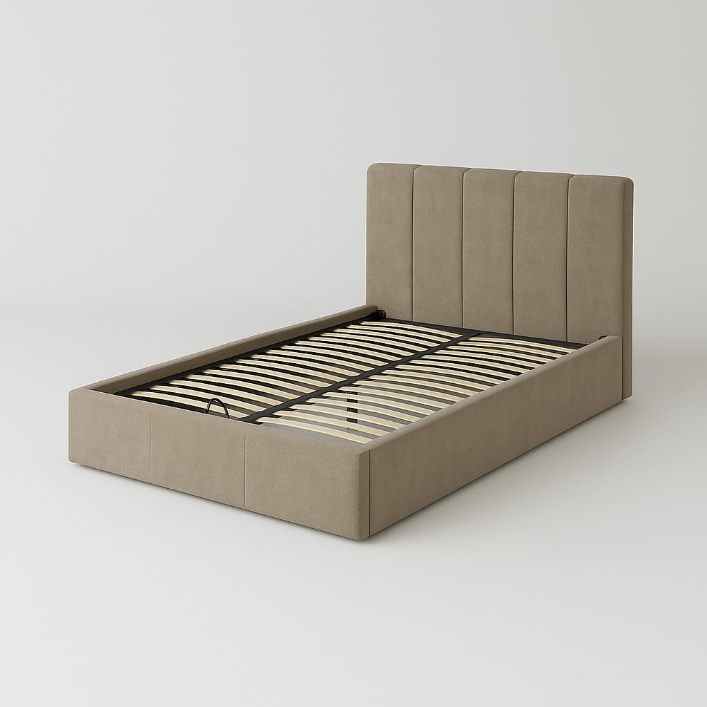 Patul include somieră. Alegeți o saltea de 140 × 200 cm (salteaua nu este inclusă).