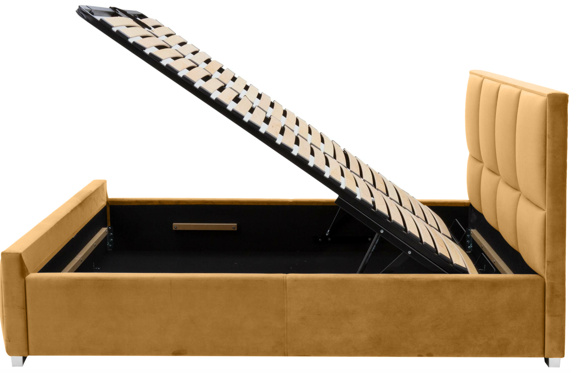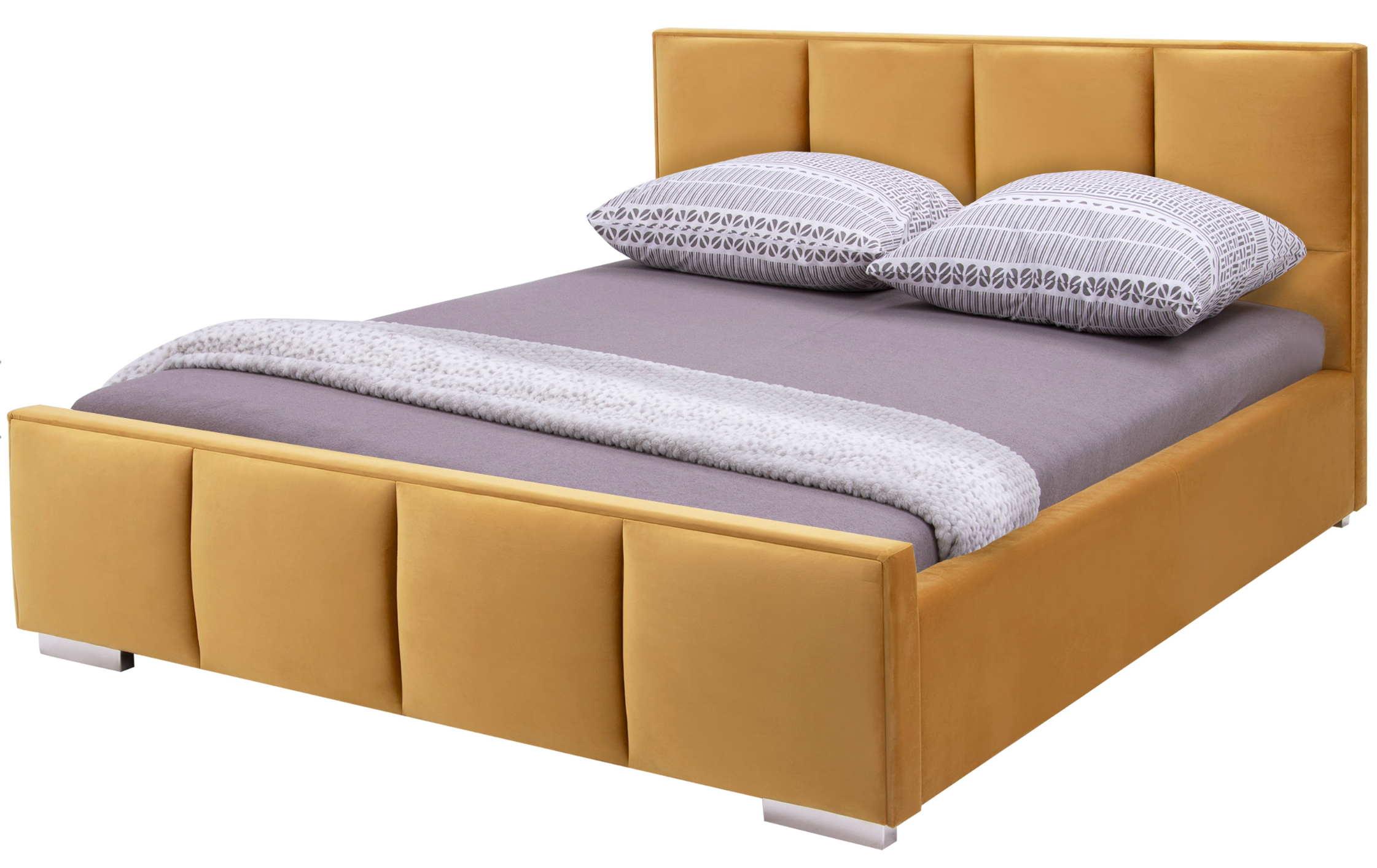 Îți place să te înconjori de galben? Adu-l în dormitor cu FABRIZZIO, patul tapițat în nuanță galben muștar ce oferă un contrast puternic și un aer regal într-un decor modern.